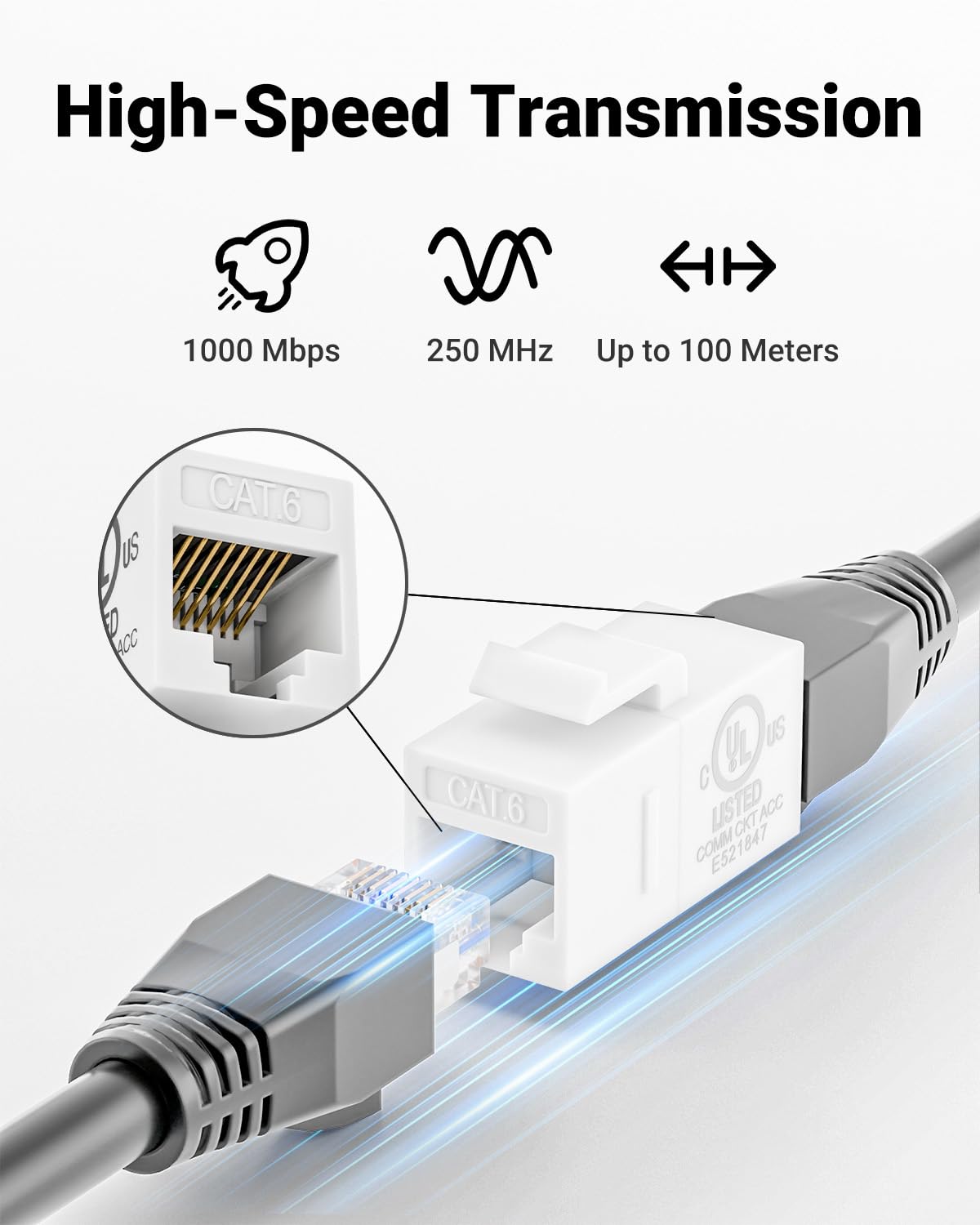 - STABLE TRANSMISSION - Gold plated pure copper contact and flame-retardant ABS housing ensure 1000 Mbps ethernet gigabit speed without signal loss.