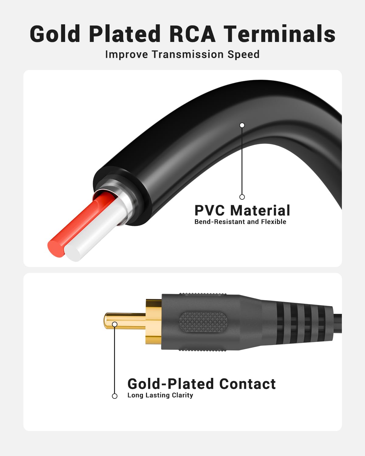 - Package Contents: 2 x 1 Male Plug to 2 Female Jack RCA Y Converter. 18 months warranty for quality problem.